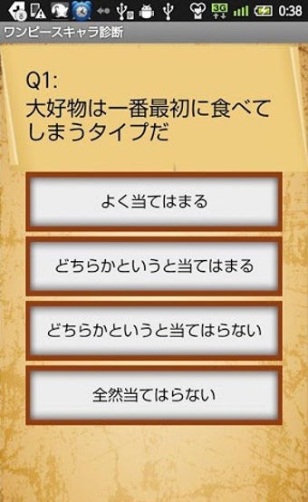 ワンピースキャラ診断は、「大好物は一番最初に食べてしまうタイプだ」などの10問の設問に対して、「よく当てはまる」「どちらかというと当てはまる」「どちらかというと当てはまらない」「全然当てはまらない」の4択で回答します。自分の気持ちに一番近い回答をタップするだけなので、電車内で吊り革を掴みながら片手でもできます。また結果をEメールやSNSで共有できるので、ワンピースが好きな友だち同士と話題にして盛り上がれるでしょう。